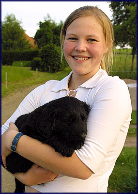 | Dorie vom sonnigen Gemüt kam bei uns am 09.05.2004 gemeinsam mit sechs Geschwistern zur Welt. Ihre Eltern sind Cara vom Lamershof und Enzo vom Amorhof. Da dies der letzte Wurf ihrer Mutter Cara war, durfte sie bei uns bleiben, wir hoffen, mit ihr eines Tages die Linie der "sonnigen Gemüter" fortsetzen zu können. Dorie ist die Hündin unserer Tochter Michelle, die sie auch eigenverantwortlich ausbilden wird. Wir hoffen, dass sie die guten Eigenschaften ihrer Eltern geerbt hat, kurzum mit einem "sonnigen Gemüt" gesegnet ist :-) |